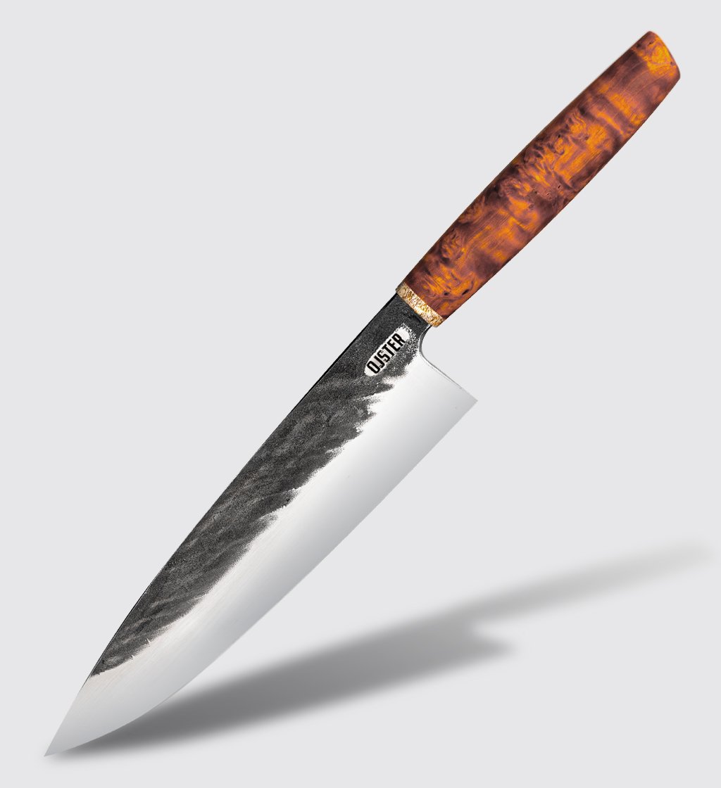 Ojster združuje najboljše iz japonske natančnosti, evropske vzdržljivosti in slovenskega mojstrstva. Razlika ni le v jeklu – temveč v občutku, ko zarežeš.